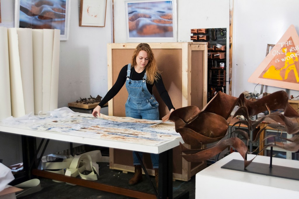An idea to take pristine copper print-making plates and bury them just below the surface of the earth at some of these construction sites was born of a desire to document the city’s energy. “When I started printing the damaged plates, it occurred to me that the plate documented actions that happened in the city, in some way archiving the documentation,” she says. “In that way, my prints and copper plates, to me at least, definitely play a role in the documentation of the history of the city – subjective as that history may be”.